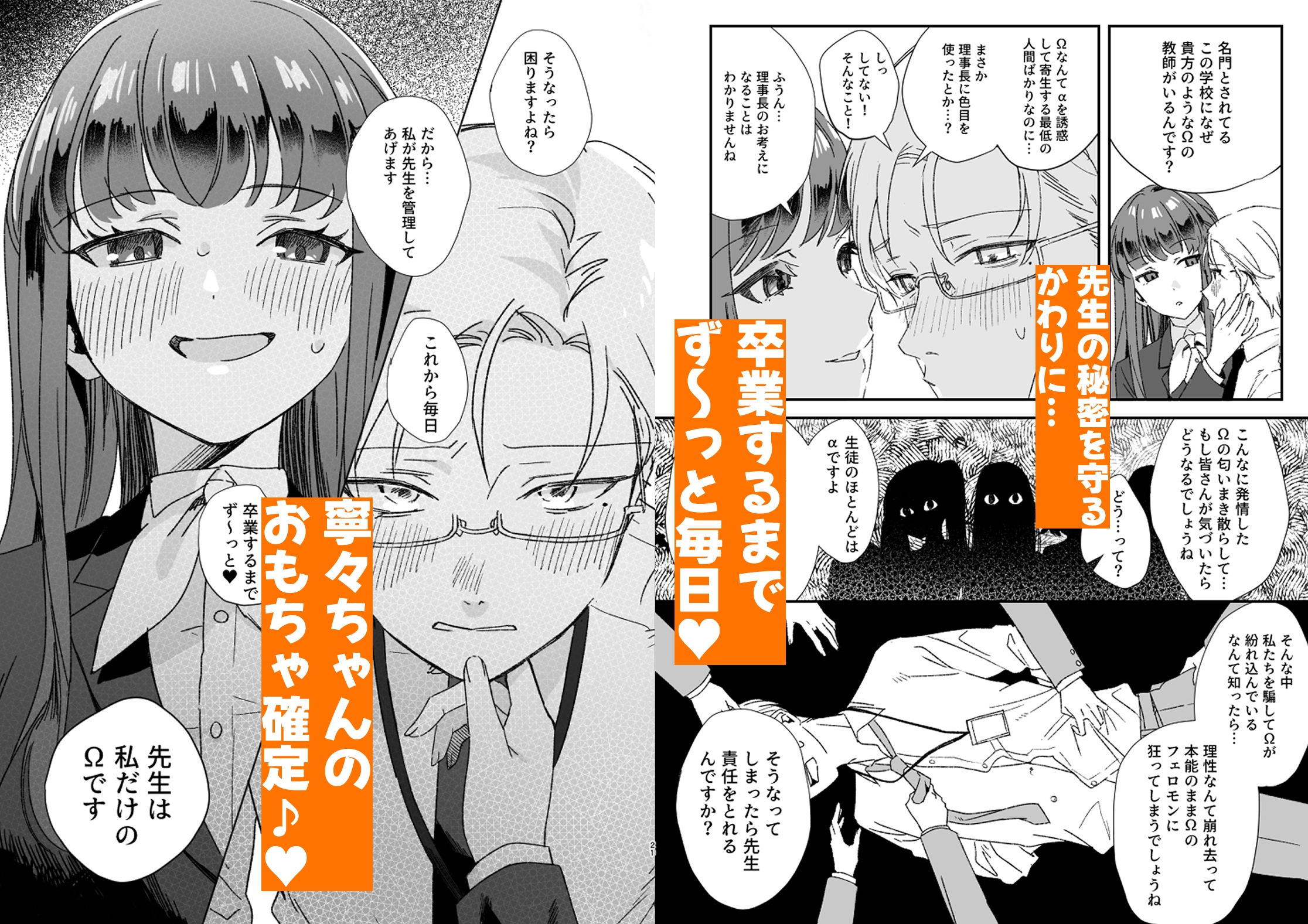 先生のことが好き―好きだから虐めたくてたまらないの 【あらすじ】 誰もがαの名門女子校「聖マリア学園」。 そこに唯一の“秘密”を抱えて赴任した社会科教師・花房は、 今日も平静を装って授業をする日々。 けれど、学年一の才女・桜小路寧々だけは違った。 先生の抑制剤の隙間から漏れる、甘いΩの匂いに気づいてしまって……。 「先生いつもとっても美味しそうなニオイをしてらっしゃるの ご自分では気づいていないでしょう?」 完璧お嬢様の瞳に宿る、熱を帯びた視線。 これは、ただの好奇心? それとも――。 【プレイ内容】 ・逆転無し ・本番無し ・女性優位 ・男性受け ・無理矢理 ・強○オナニー実況 ・…