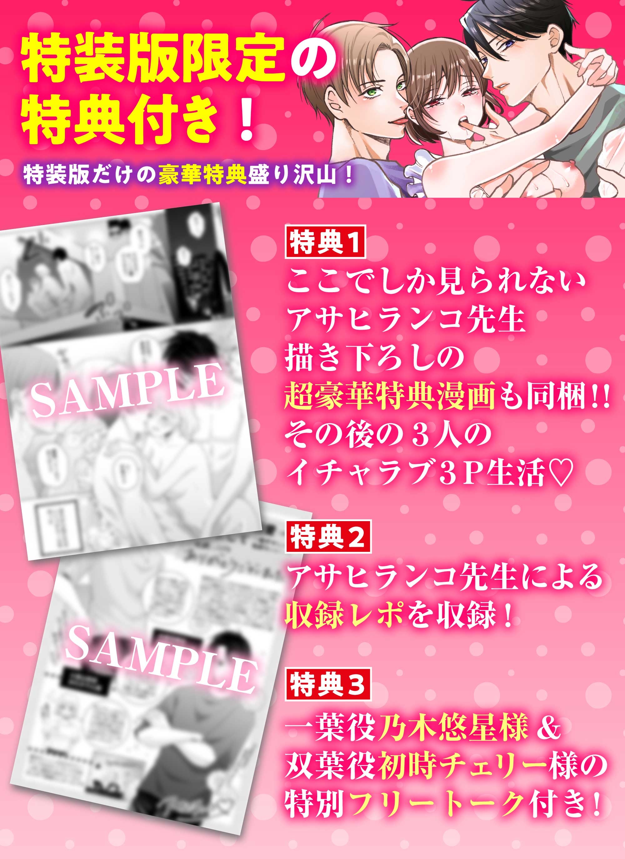 【特装版限定の特典付き!】 特装版だけの豪華特典盛り沢山! 《特典1》 ここでしか見られないアサヒランコ先生描き下ろしの 超豪華特典漫画も同梱!! その後の3人のイチャラブ3P生活! 《特典2》 アサヒランコ先生による収録レポを収録! 《特典3》 一葉役乃木悠星様&双葉役初時チェリー様の特別フリートーク付き! ■特…