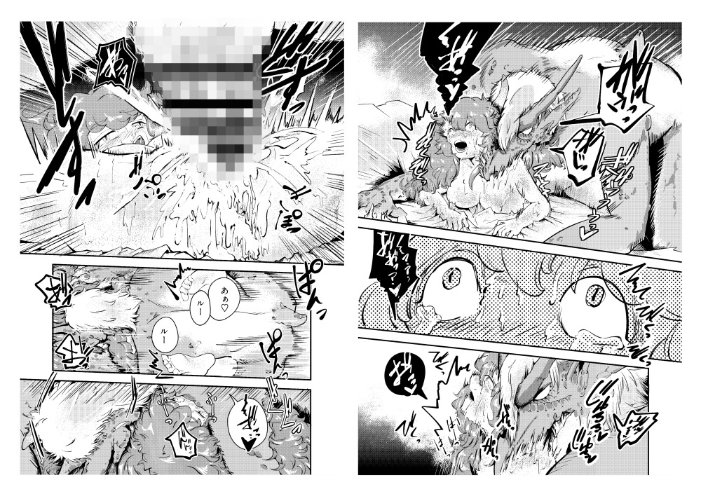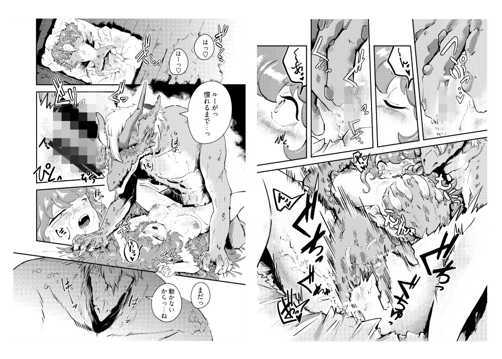 あらすじ 「「なんでそんな姿にになってるの⁉︎」」 ルースとエドは、竜と人の異種族夫婦。 ある日長旅からエドが帰ると、なんとルースは人の姿になっていた。 ところが、エドも竜(未満)になっていて⁉︎ ーだけど、2人とも今の姿なら「あれ」ができるかも…? そう、「交尾」が 表紙+本文65p+あとがき 体格差/手マン/正常位/噛みつき/断面図/寝バック/種付けプレス ※エドの人間態での行為シーンはありません。 登場人物 …