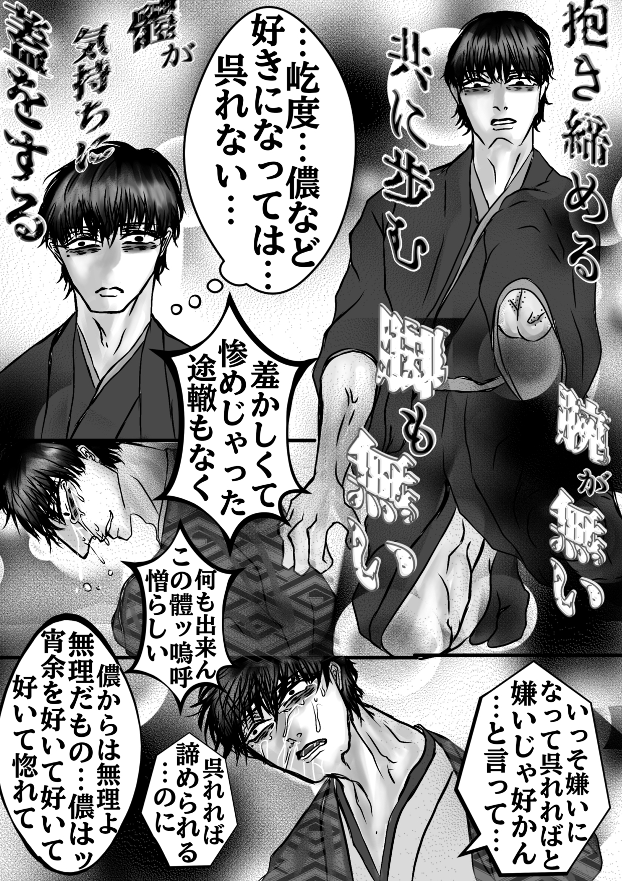 「好きで好きで惚れて愛しゅうて堪らんのにどうして手放せる…それでも宵余は美しいのだから儂を愛するなんぞ駄目じゃ。だってこの身体じゃあ宵余を抱き締めてやれんもの…だから宵余…嫌って愛さないで。」