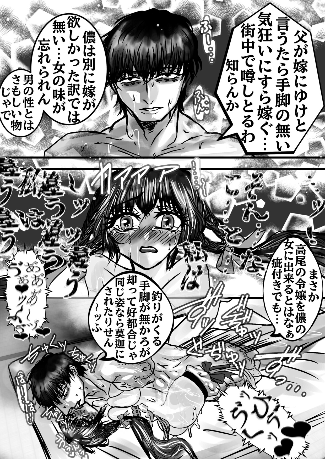 線対称に手脚を欠損した夫婦の歪み狂い病み欠けて満ちゆく愛。歪んだ愛には理由があって愛しいから愛さないで。中出し。クンニ。 欠損注意 線対称に片手脚を欠損している男女は夫婦となり欠けた愛が満ちる迄。戦後昭和に宵余(よよ)は篤継(あつつぐ)の許へ嫁ぐ。篤継は未亡人の宵余に酷い言葉を浴びせ暇があれば無理矢理にでも身体を重ね宵余に歪み病み狂気の愛をぶつける。ある日篤継の行いは劣等感から来る物だと知る。嘲る宵余は自身の心の醜さに身を捩る。篤継は諭し許し…宵余は愛しさを覚えるが篤継は宵余を突き放す。愛しいから愛さないで。二人の愛の行く先は。66頁。 「好きで好きで惚れて愛しゅうて堪らんのにどうして手放せる…それでも宵余は美しいのだから儂を愛するなんぞ駄目じゃ。だって…
