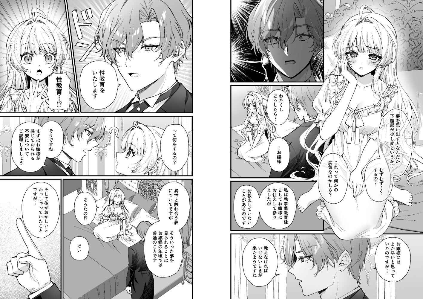 ある夜、男性と裸で抱き合う夢を見てしまい、目覚めても消えない身体のむずむずに戸惑う彼女は、執事のウィルに泣きついてしまう。 「お嬢様にはまだ早いと思っていたのですが……」
