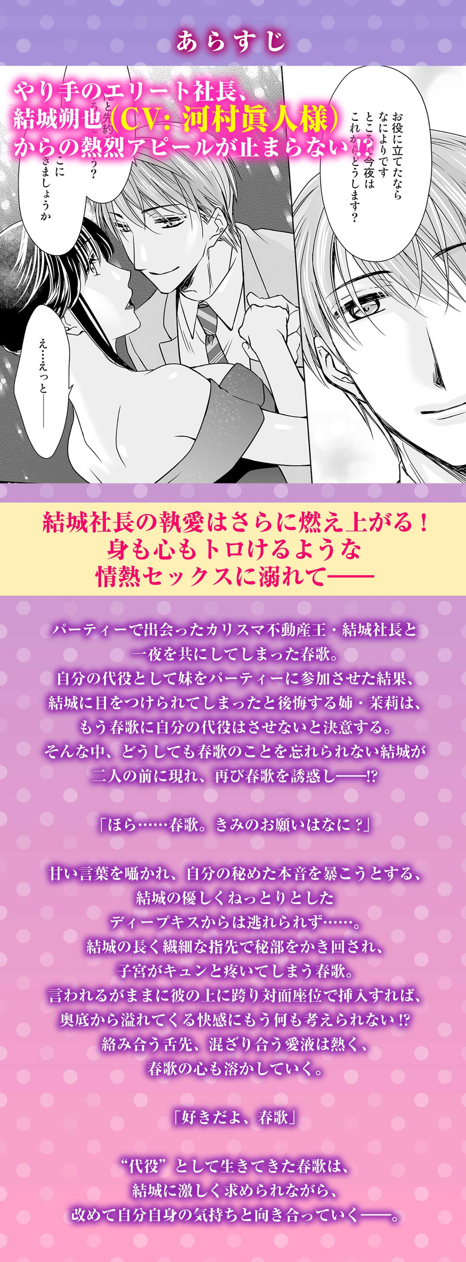 「【CV:河村眞人】身代わりなのに重すぎる独占欲に激しくイカされました~結城社長の執愛に溺れて~【ボイコミ付き特装版】(RJ01146063)」」
