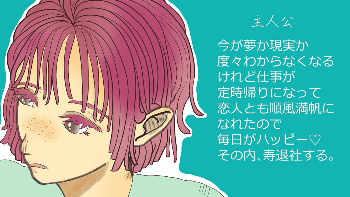 お疲れ気味な女性。イケメンが大好き。疲れすぎた所為か卑猥な夢を観るようになる。今が夢か現実か分からなくなっていくが本人的にはハッピーなので気にしていない。
